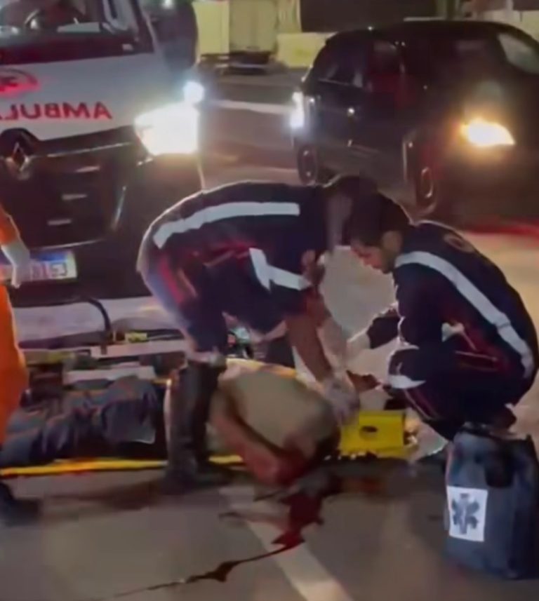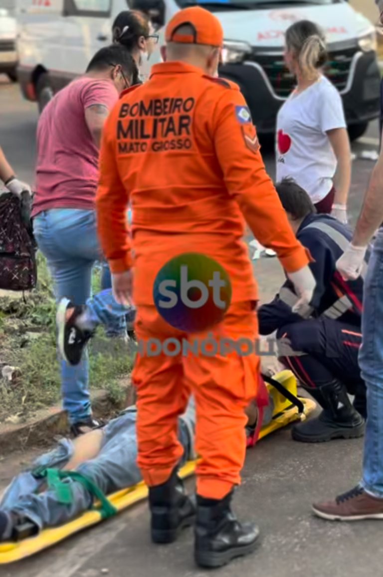 Motociclista fica gravemente ferido ao rampar quebra-molas e cair violentamente em Rondonópolis; vídeo mostra o resgate