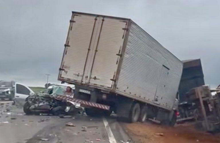Motorista morre preso às ferragens em grave acidente envolvendo 4 veículos na BR-163; vídeos