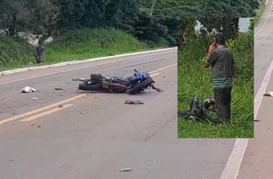 Imagens feitas por populares mostram o condutor deitado na pista e a moto destruída após o acidente.