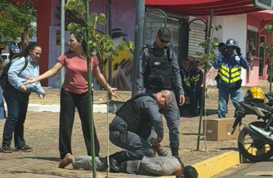Bandido com faca de açougueiro toca o terror em lojas no Centro de Rondonópolis; PM usa choque para contê-lo