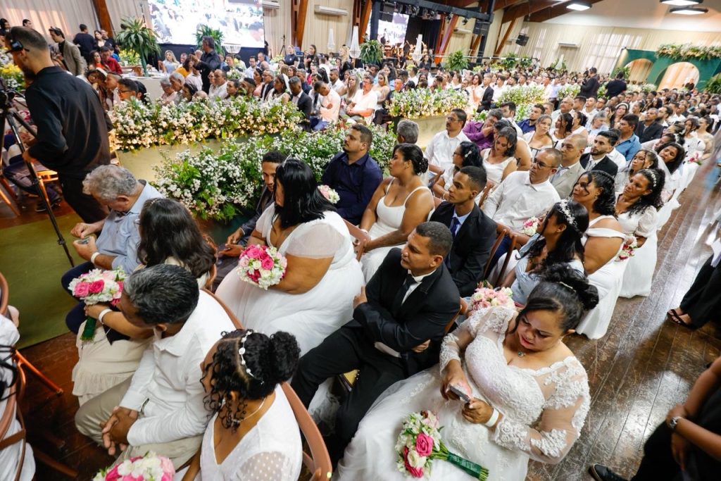 “BEM CASADOS”: Alessandra Ferreira comanda união de 118 casais em casamento comunitário