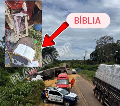 Autoridades confirmaram a morte do motorista de um caminhão após um grave acidente na MT-235, na curva do Rio Sucuruína, a cerca de 50 quilômetros de Campo Novo do Parecis-MT, no final da manhã desta quarta-feira. Um fato que chamou atenção foi uma bíblia encontrada aberta entre os destroços da colisão.