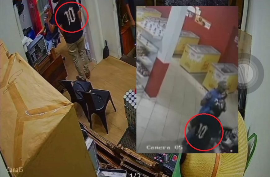 No primeiro crime, o suspeito entrou em uma sorveteria localizada em frente à Havan e furtou um cliente que estava no local. As câmeras de segurança registraram o momento em que ele se aproxima da vítima e, de forma rápida, subtrai os pertences e furta algo do caixa, antes de deixar o estabelecimento.