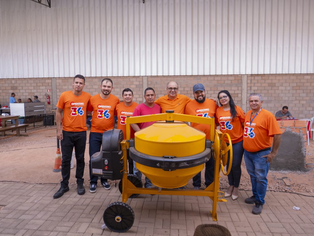 Logo na entrada, os participantes receberam uma camiseta oficial do evento e uma pulseira para concorrer a diversos prêmios. Entre eles estavam 40 unidades de Sikal, ferramentas das marcas Stanley e Dewalt, além de 10 unidades de cimento extra forte 40kg e 10 unidades de cimento 50kg da Ciplan. O prêmio mais esperado foi a betoneira Menegotti, que emocionou o vencedor. Segundo ele, o presente representou a resposta de uma oração feita ainda na chegada ao local: “Pedi a Deus que não queria nenhum outro prêmio, apenas a betoneira”, disse, agradecendo também ao filho, que insistiu para que ele participasse, e à Operário pela oportunidade.