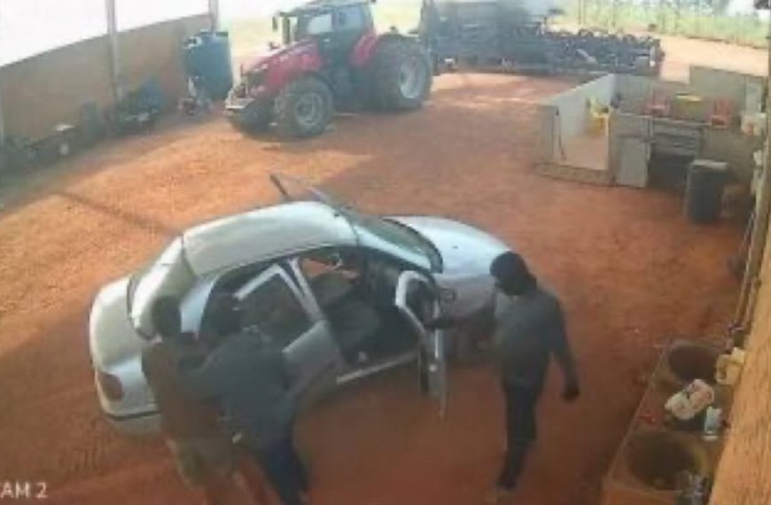 De acordo com o boletim de ocorrência, os dois homens, encapuzados e armados com revólveres, invadiram o galpão agrícola da fazenda e renderam um funcionário. Eles exigiam informações sobre equipamentos de tratores, como sistemas de piloto automático. Sem conseguir acesso imediato, amarraram o trabalhador, o colocaram em um carro e seguiram até a sede da propriedade.