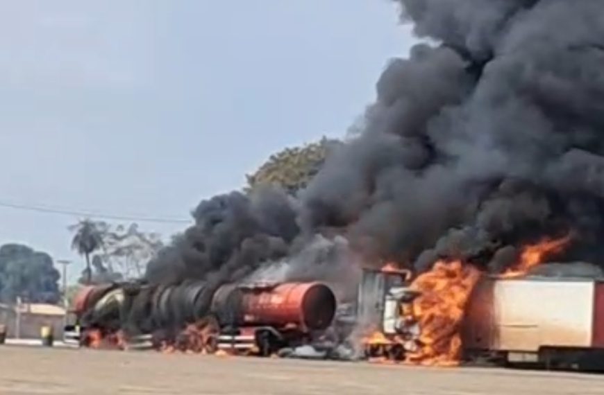Forte incêndio em posto de combustível causa pânico ao atingir carretas e deixar rastro de destruição em MT; vídeos