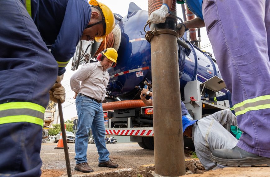 Galerias entupidas revelam abandono em Rondonópolis; Cláudio Ferreira usa tecnologia Vac-All para limpar a cidade