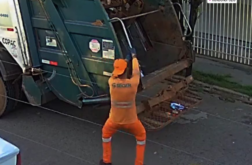 Câmeras de segurança no Residencial Jardim das Hortências registraram um momento que vem arrancando sorrisos em Rondonópolis. Um gari transformou a rotina pesada de coleta de lixo em um verdadeiro show de bom humor, dançando animado enquanto se apoiava no caminhão.