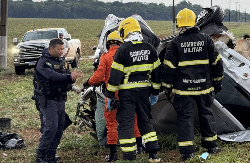 Gravíssimo acidente entre camionete e carro deixa pessoa morta em rodovia de MT; vídeo mostra estragos