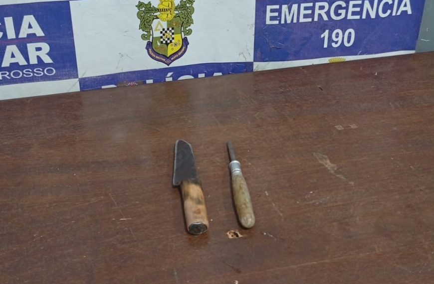 A faca utilizada e uma chaira foram apreendidas e entregues na delegacia para os procedimentos periciais. O caso segue para investigação.