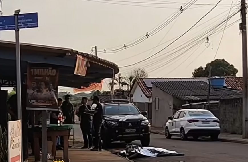 Homem é assassinado com golpe de faca no peito em frente a boteco em MT; vídeo