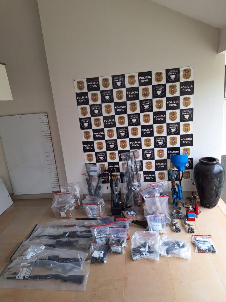 No total, a equipe apreendeu 11 armas nesse endereço, entre pistolas, carabinas e revólveres, além de munições dos calibres 9mm, 10, .32, .22, .357 Magnum, .556, .44 e calibre 12, entre outros. Em outro alvo na zona rural, os investigadores localizaram um cômodo equipado com máquinas de recarga, pólvora, espoletas, projéteis e armas de fogo. Esse endereço corresponde ao local da gravação do vídeo que originou a apuração, ligado ao mesmo suspeito detido.