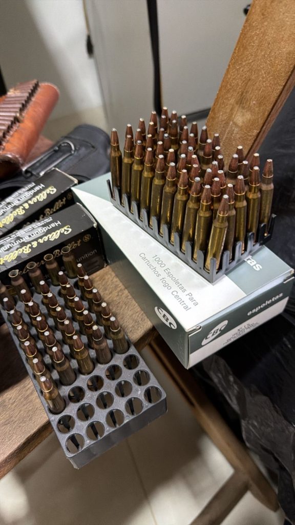Conforme a Polícia Civil, durante o cumprimento dos mandados, a equipe prendeu em flagrante um homem de 46 anos por posse ilegal de munição de uso restrito. Em um imóvel, policiais localizaram dois cofres dentro de um cômodo usado como escritório, com diversas armas curtas e longas, além de grande quantidade de munições de vários calibres, inclusive 5.56, e insumos para recarga.