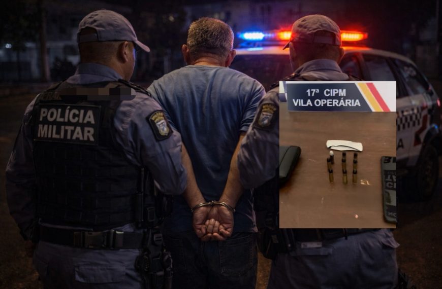 A PM realizou a abordagem no local, apreendeu nove munições calibre .38 e um canivete, e encaminhou o suspeito para a delegacia