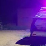 A PM não localizou o agressor, num primeiro momento, mas quando realizavam rondas na região, receberam um novo chamado e encontraram o indivíduo na frente do portão da vítima, forçando entrada no portão e com uma faca na mão.