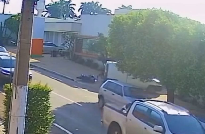 Na manhã desta quarta-feira (15), um motociclista colidiu contra um carro ao tentar ultrapassar entre o veículo e o meio-fio, no momento em que a motorista realizava a conversão para entrar em um estacionamento de uma clínica veterinária em Rondonópolis.