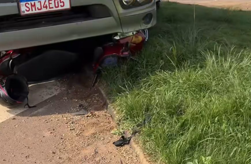 As informações iniciais apontam que a colisão foi do tipo transversal, ocorrida na rotatória do trecho norte da rodovia. A motocicleta acabou ficando embaixo do veículo de cargo.