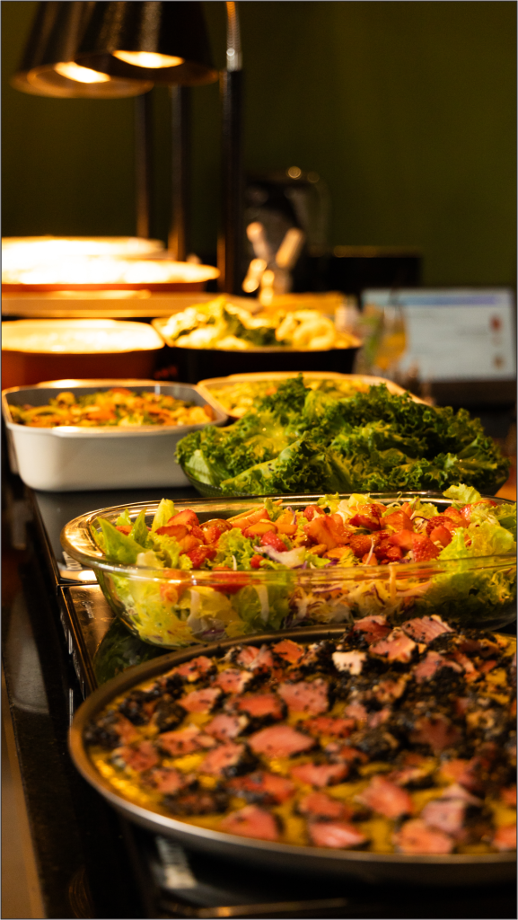 Na hora do almoço a MundoFit garante um buffet irretocável. Ingredientes frescos e selecionados para proporcionar uma experiência repleta de sabor e personalidade. Diversas opções, envolvendo legumes e verduras, carnes e peixes, além do tradicional arroz e feijão. Contamos também com arroz integral e outras variedades de acompanhamentos. Pra fechar a conta, todo dia tem uma sobremesa diferenciada, zero açúcar e por conta da casa. Vem experimentar!