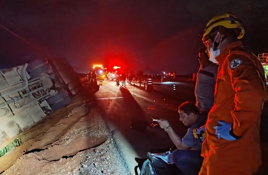 Um ônibus de viagem tombou e deixou 6 pessoas gravemente feridas, na madrugada desta quarta-feira (14), por volta de 1h30, no km 678 da BR-163, em Lucas do Rio Verde. O veículo seguia na rodovia e transportava 26 passageiros no momento do sinistro.