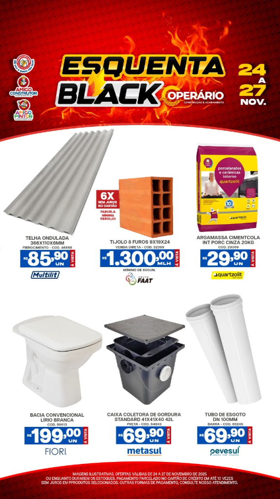 A Operário Construção e Acabamento abriu o período mais aguardado pelos consumidores e marcou, entre 24 e 27 de novembro, o início do Esquenta Black, o aquecimento oficial para a temporada de ofertas que domina o comércio no fim do ano. A rede colocou preços especiais nas prateleiras, criou condições diferenciadas de pagamento e liberou oportunidades exclusivas para quem deseja garantir compras antes da multidão.