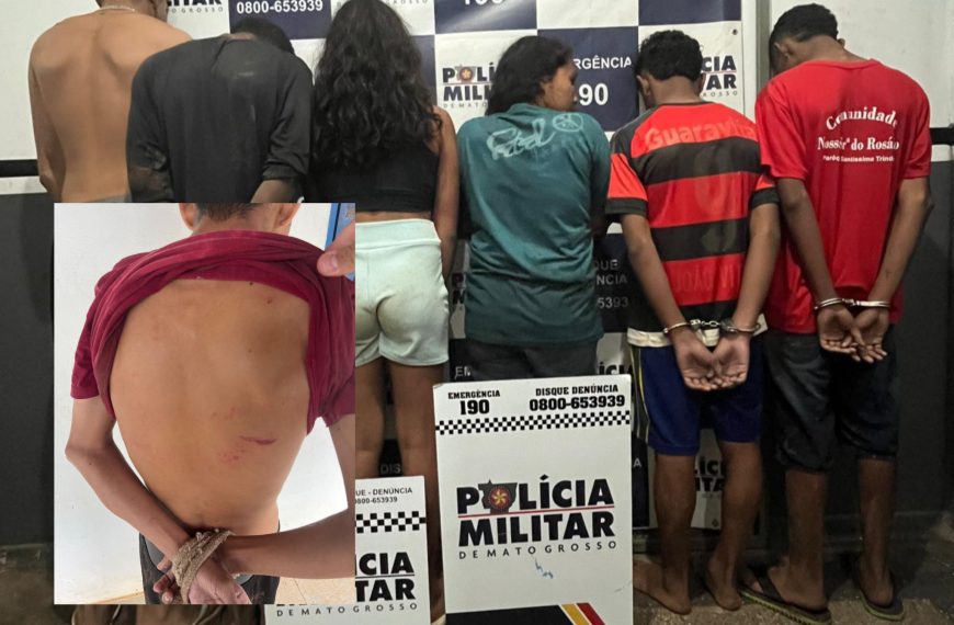 Um adolescente de 16 anos escapou da morte após equipes policiais interromperem uma sessão de tortura que já durava cerca de cinco horas, na tarde de terça-feira (16), no bairro Jardim Universitário, em Cáceres-MT. A ação resultou na prisão de um adulto e na apreensão de cinco adolescentes ligados a uma facção criminosa.