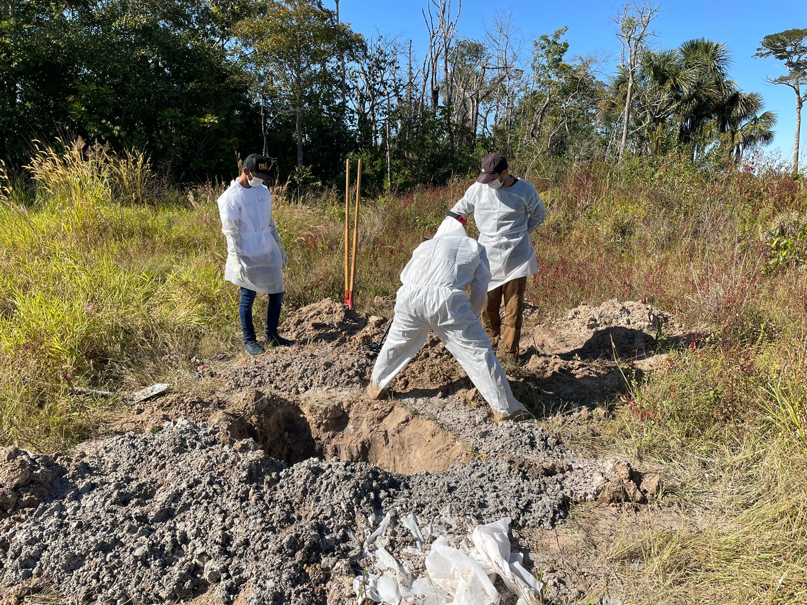 No local foram feitas buscas para localizar as possíveis covas. O dono da propriedade rural forneceu uma retroescavadeira para ajudar no trabalho.