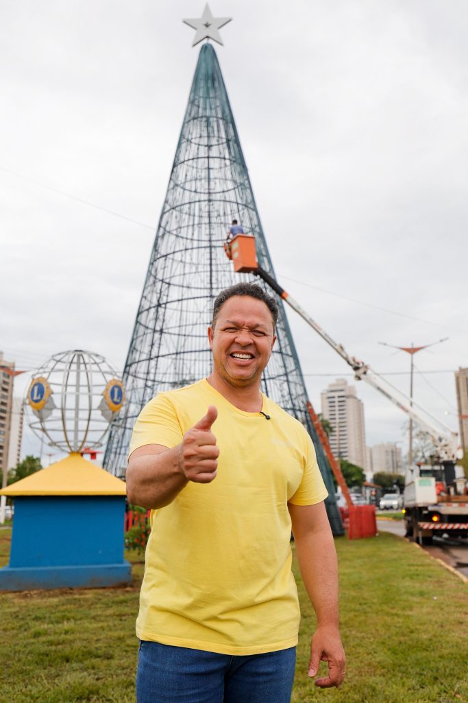 Além da decoração natalina na Praça Brasil, que teve o acender das luzes e abertura ao público no sábado passado (6), a gestão municipal também está montando uma árvore de Natal gigante na Avenida Lions Internacional, na rotatória próxima ao cemitério. “Quero convidar você para o acendimento dessa árvore de Natal de mais de 20 metros, para comemorar os 72 anos de Rondonópolis”, externou.