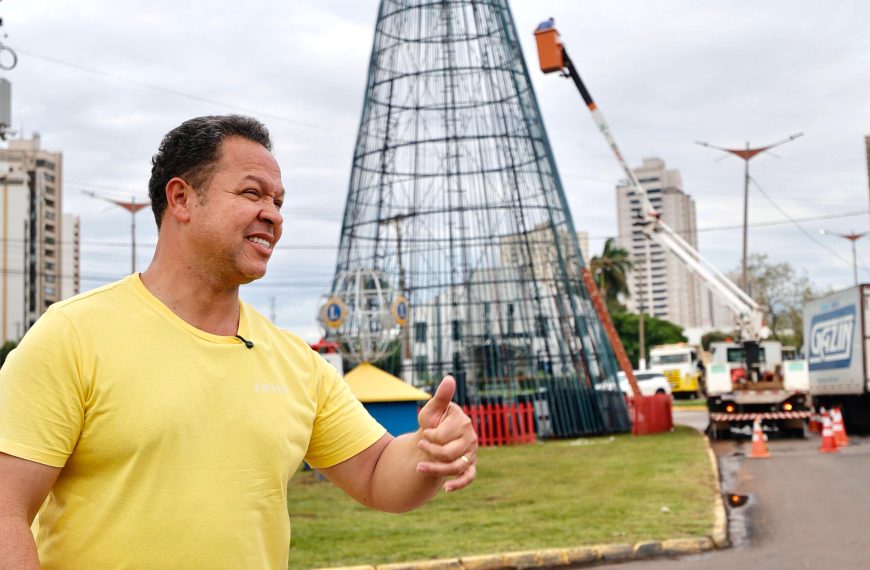 Além da decoração natalina na Praça Brasil, que teve o acender das luzes e abertura ao público no sábado passado (6), a gestão municipal também está montando uma árvore de Natal gigante na Avenida Lions Internacional, na rotatória próxima ao cemitério. “Quero convidar você para o acendimento dessa árvore de Natal de mais de 20 metros, para comemorar os 72 anos de Rondonópolis”, externou.