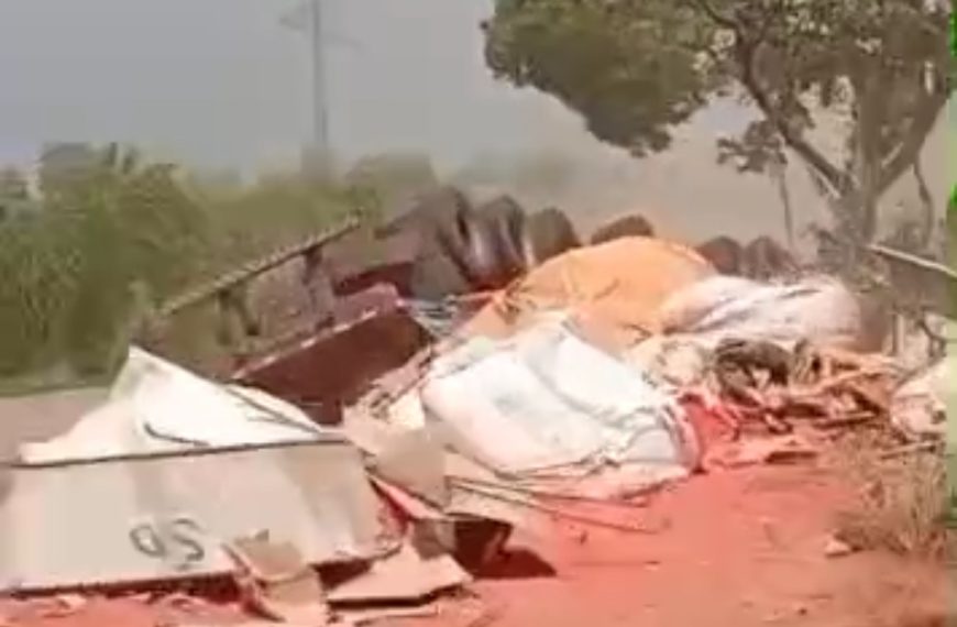 De acordo com informações, o motorista teria perdido o controle da direção ao se distrair para pegar água. A carreta saiu da pista, tombou e ficou completamente destruída. Parte da carga se espalhou pela rodovia, causando lentidão no trânsito.