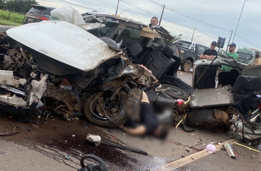 Veículo destroçado: casal morre após fortíssima colisão entre Compass e caminhão na BR-163; vídeo
