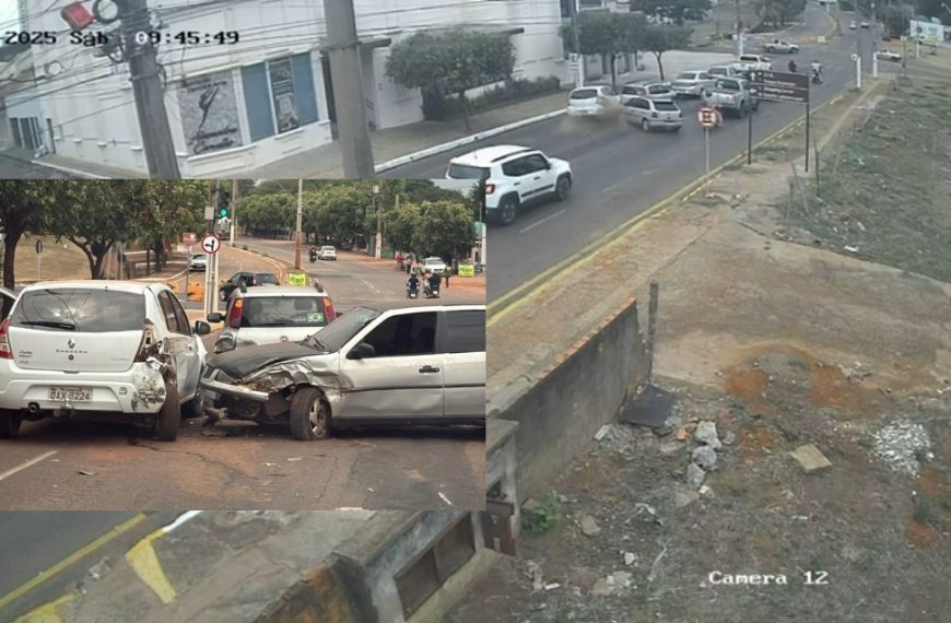 Sem controle da direção, o Gol atingiu a traseira dos veículos parados, provocando a colisão. Uma câmera de segurança instalada em um comércio próximo flagrou o momento exato do acidente, registrando o instante em que o veículo desgovernado se choca contra os carros à frente.