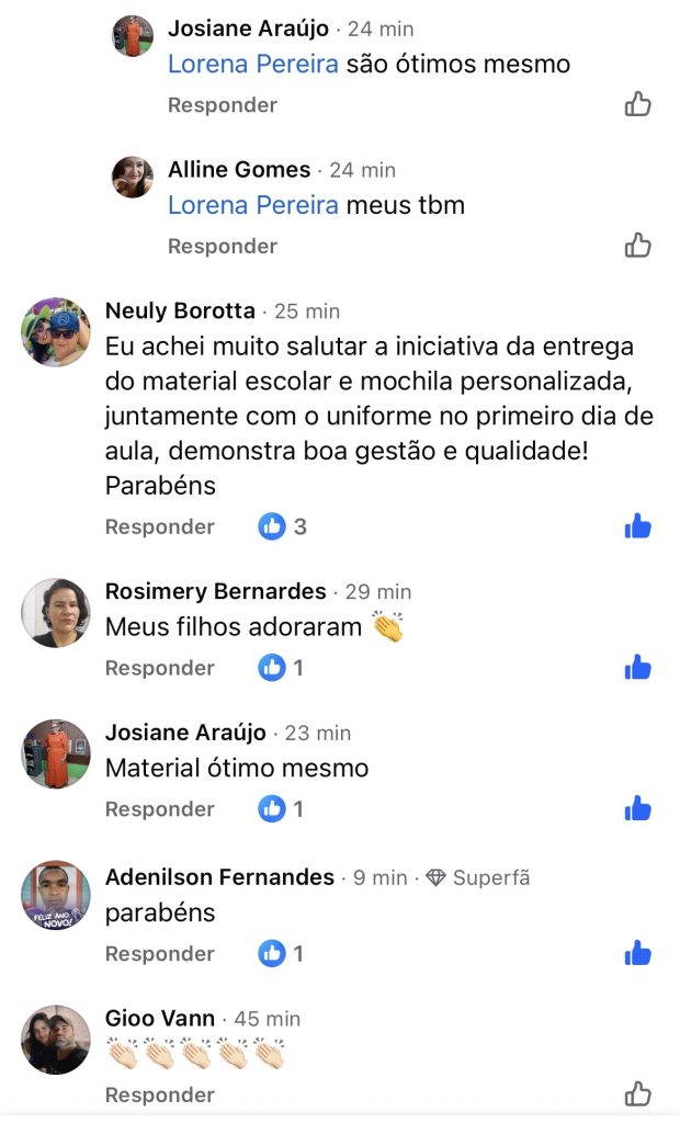 Pais elogiam em um página do Facebook a entrega dos materiais distribuídos pela gestão:
