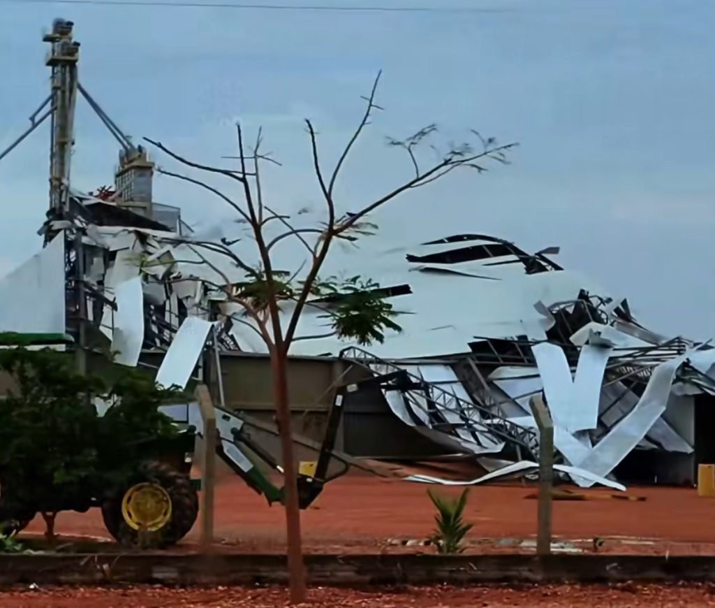 Vendaval espalha terror e destelha cooperativa no interior de MT; veja vídeo e imagens