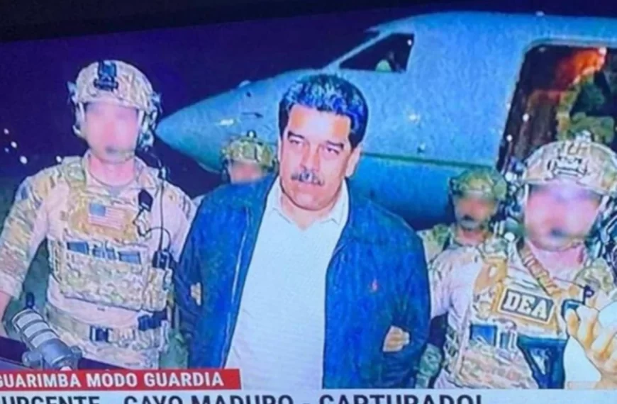 Na foto, Maduro aparece sendo levado por agentes, aparentemente em uma pista de pouso, enquanto uma aeronave aparece parada ao fundo. Não há qualquer indicação sobre em qual local teria sido feito o suposto registro. Alguns sites e influenciadores ao redor do mundo afirmaram que o conteúdo teria sido feito por inteligência artificial. Até o momento, nenhum órgão oficial confirmou que a imagem é real.