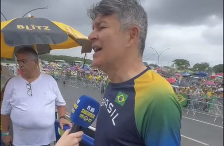 “Não tem nada mais poderoso do que o povo nas ruas. Apesar de tudo, estão aqui debaixo de chuva, sem arredar o pé, pela liberdade, por justiça e pela liberdade dos presos políticos ligados a Jair Bolsonaro. É o povo soberano”, completou.
