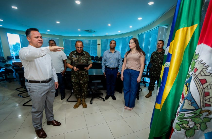 O chefe do posto de recrutamento e mobilização de Rondonópolis, 1º tenente Sandro Mar Paz Soares, deu posse na manhã desta quarta-feira (26) ao novo presidente da Junta de Serviço Militar, o prefeito Cláudio Ferreira. O ato que indica o novo presidente foi oficializado com a assinatura do termo de posse e na sequência com o juramento à bandeira.